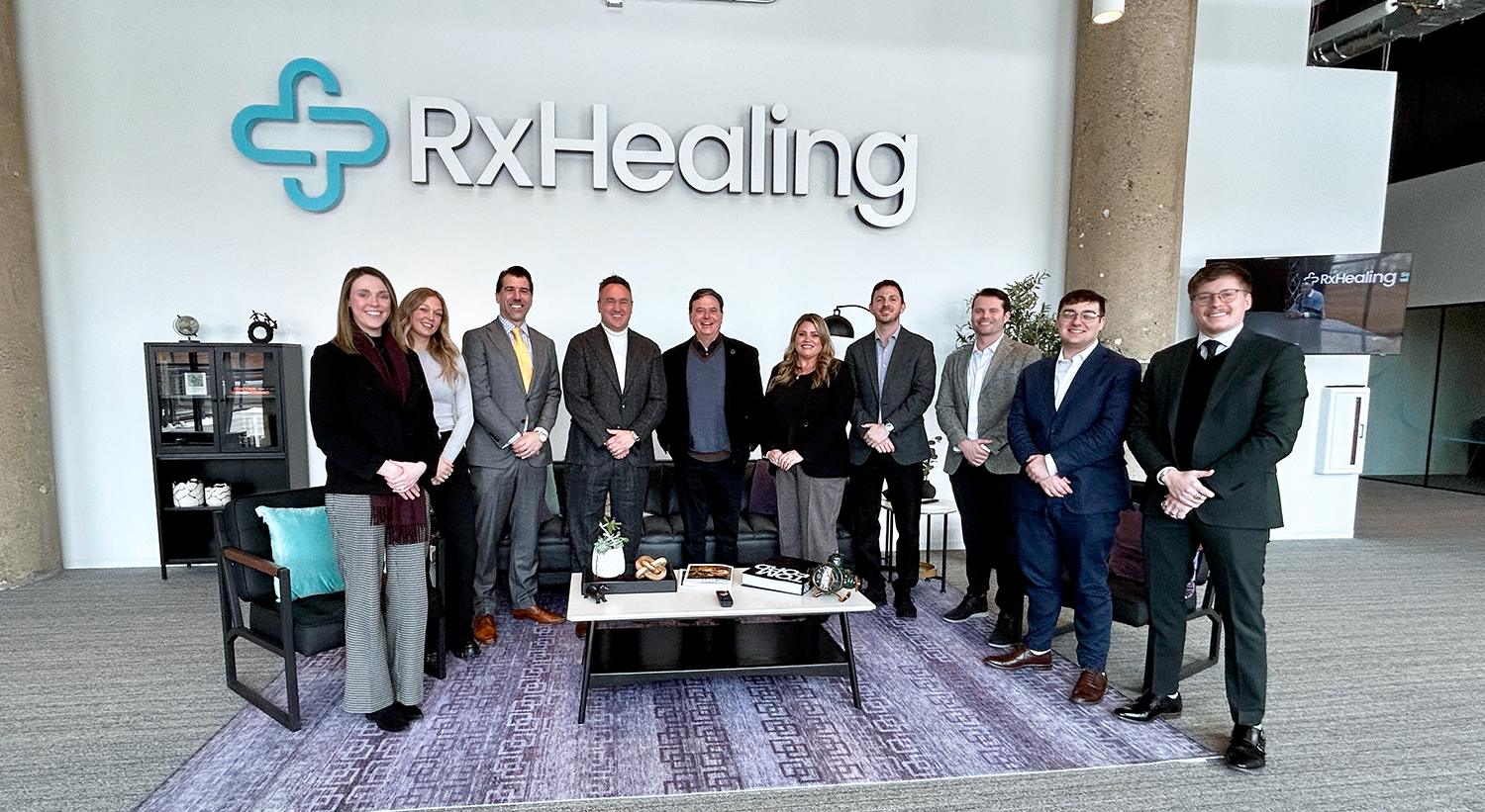 RxHealing leadership and staff alongside Indiana Attorney General Todd Rokita at our headquarters in Ft. Wayne IN.